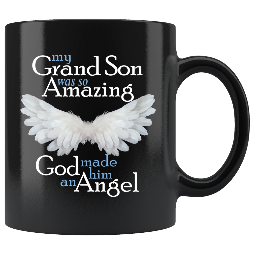 My Grandson Was So Amazing God Made Her An Angel 11 oz Black Coffee Mug / Blue