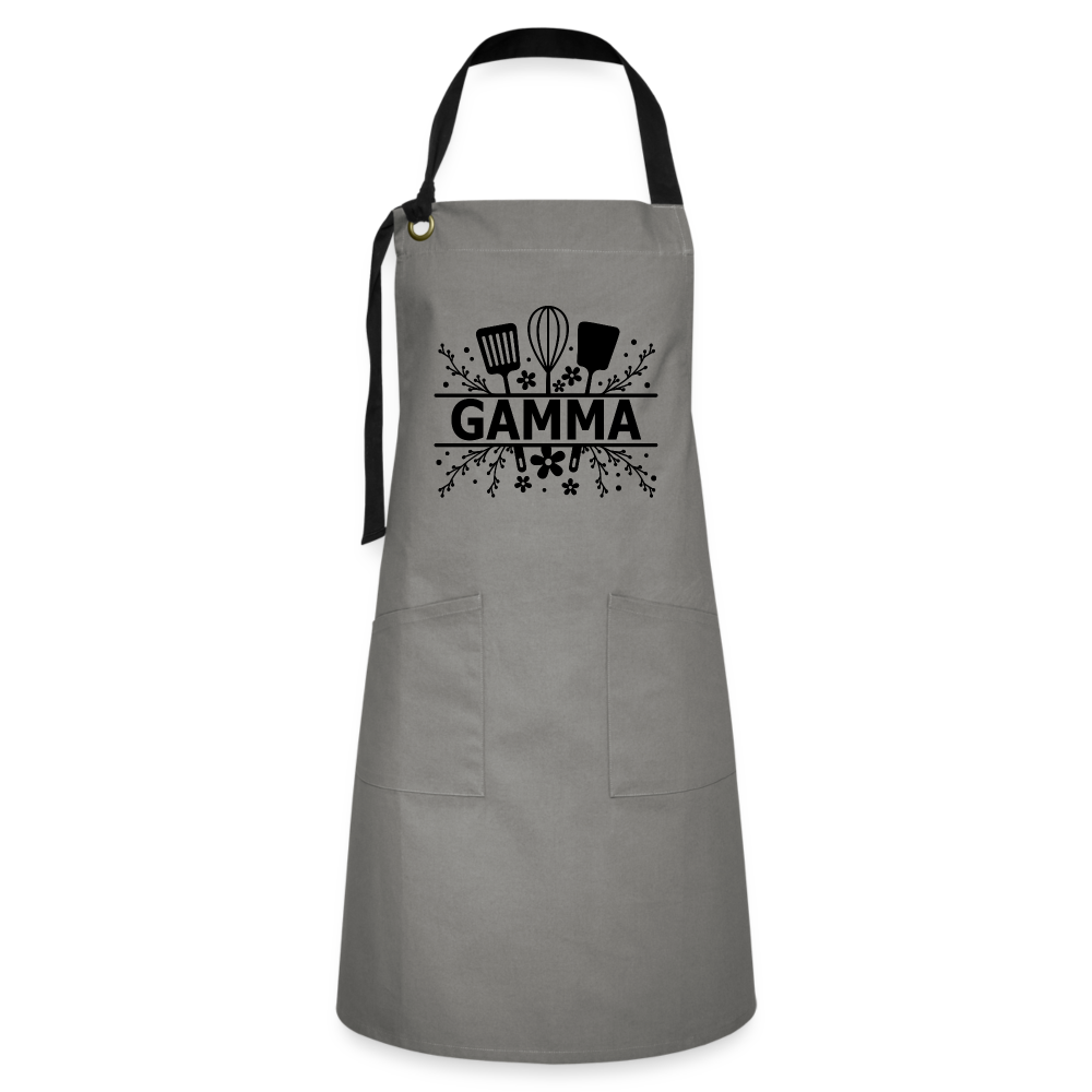 Gamma Apron, Gift for Gamma Artisan Apron, Mother's Day Gift, Grandparents Day Gift, Birthday Gift for Gamma A jack-of-all-trades apron for an added layer of protection. Do you do painting, gardening, or cooking? This artisan apron will make you look stylish with contrasting neck and hip bands. Brushes, corkscrews, and other utensils can be stashed away in the two front pockets. 2 front pockets With metal eyelet for tying the neckband Neck and hip band in contrasting colors Light quality: 3.2 oz Material: 100% cotton, metal You will receive an e-mail with your tracking information when your order ships to the email you have listed on your Etsy account. Your Satisfaction is important to us. Please let us know if there are any issues with your purchase. We will do what we can to remedy the problem. This product is made especially for you as soon as you place an order, so it takes us a bit longer to deliver it. Making products on demand instead of in bulk helps reduce overproduction, so thank you for making thoughtful purchasing decisions!